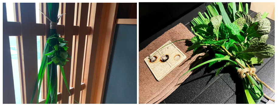 ここでは、同センター屋上の菜園で育てられた、レモングラスやミントなどのハーブを用いた”ハーブロウリュ”が行われています。
